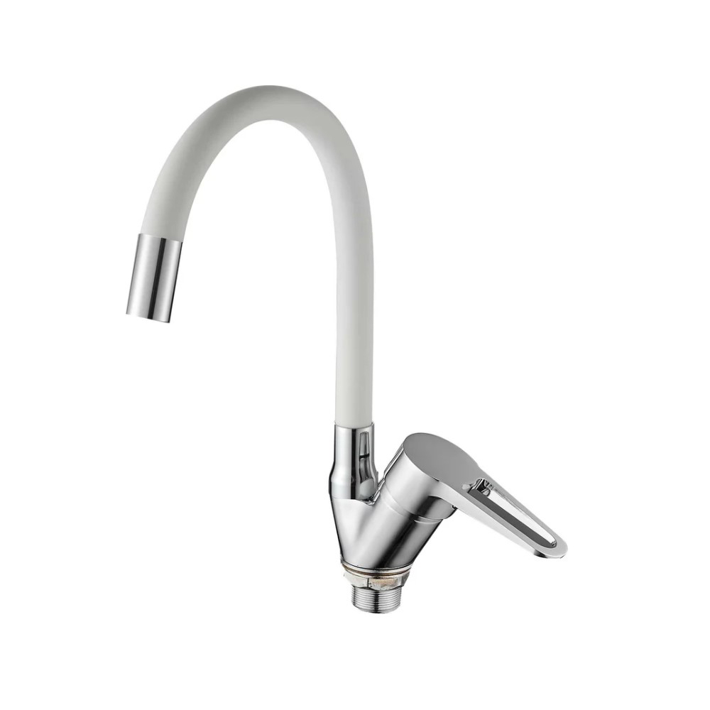 Смеситель для кухни с гибким изливом D-Lin (Д-Лин) D150303-3, хром/белый