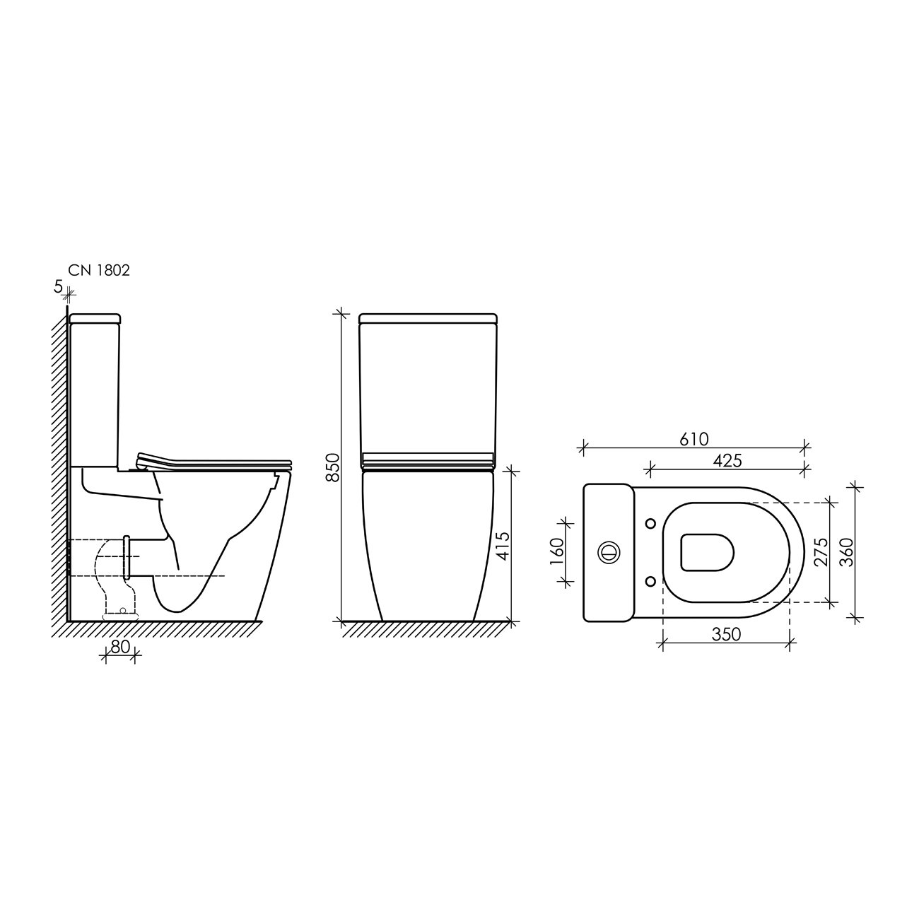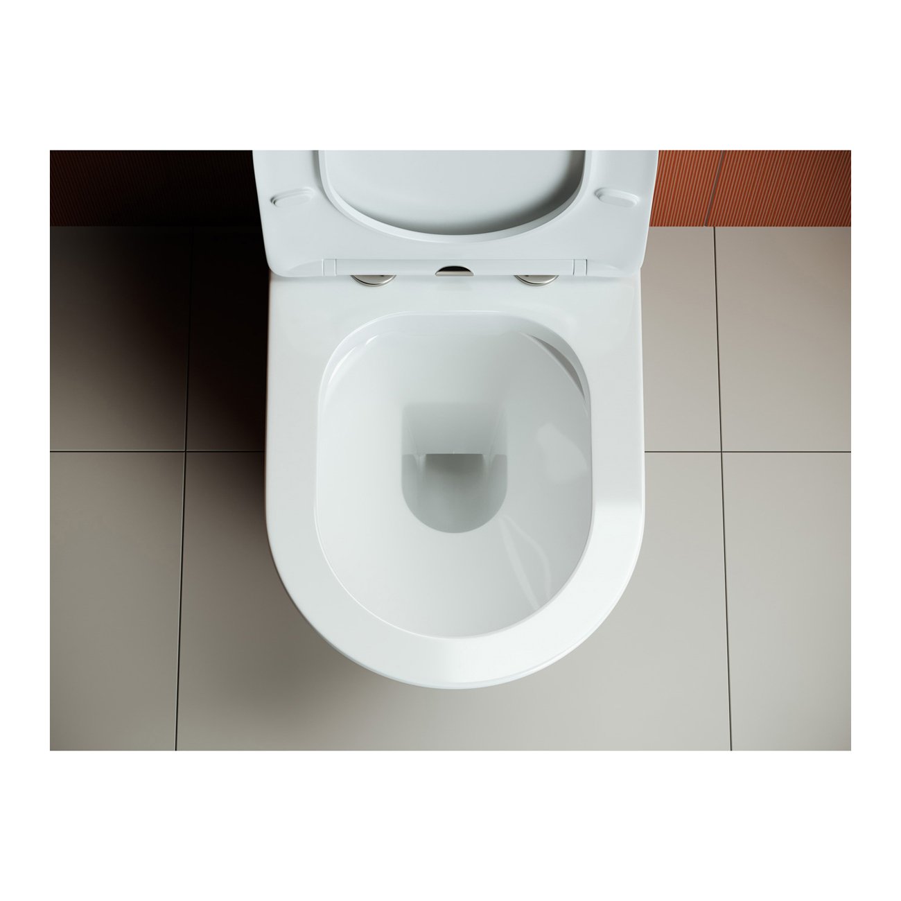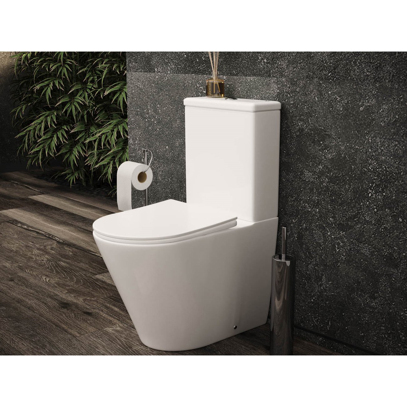 Напольный пристенный унитаз с бачком HighLight Rimless, двойной смыв 3/6 арматура, нижняя подводка глубокий смыв, горизонтальный (универсальный) выпуск, с крепежом, с ультра тонким сидением и крышкой с функцией плавного закрытия, дюропласт