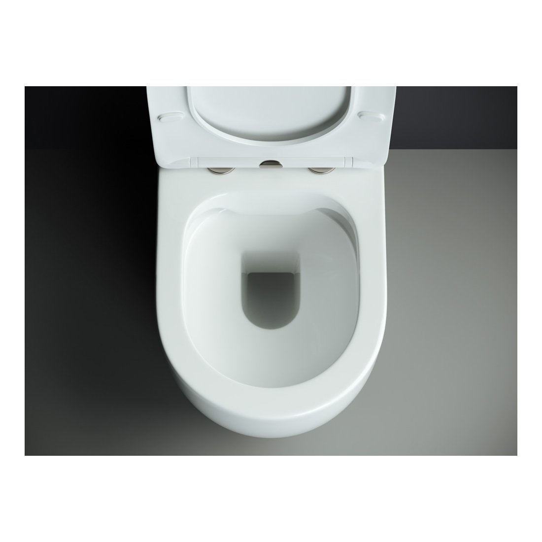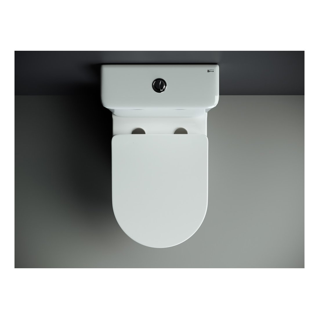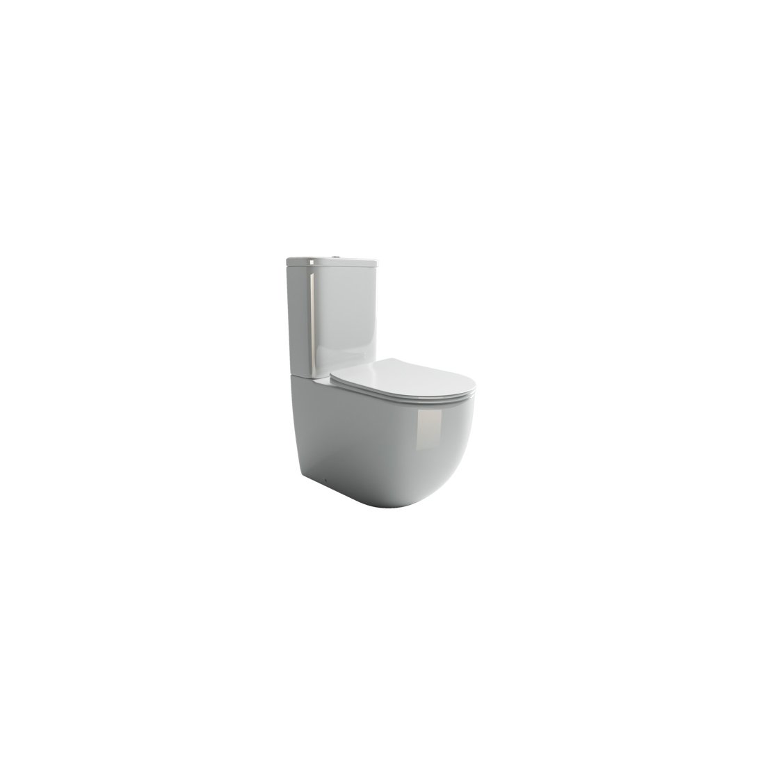 Напольный пристенный унитаз с бачком Mia Rimless, двойной смыв 3/6 арматура, нижняя подводка глубокий смыв, горизонтальный (универсальный) выпуск, с крепежом, с ультра тонким сидением и крышкой с функцией плавного закрытия, дюропласт